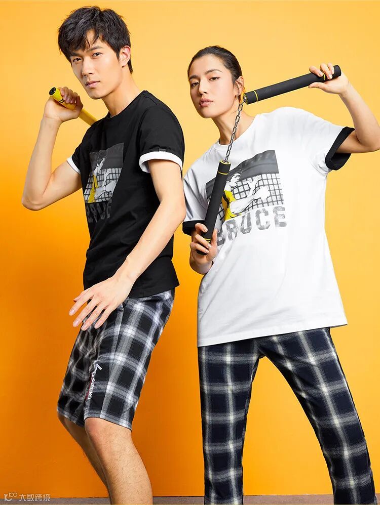 海澜之家与李小龙的正版联名IP人物头像T恤,更有种嘻哈帅气的感觉。