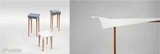耳语工作室带来的「地质的层」,是选择不同种类、色泽的土在灌浆过程中,至下而上逐层灌浆,像是潮水般的涨退与覆盖,或是地层的累积与融合,将他们凝固在同一个物体上,使得在同一物体上同时呈现出不同地域和纯度的土质。