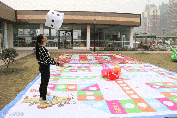 由石头剪刀布决定各组家庭出发的先后顺序,掷出骰子显示数字几,就往前走相同的步数。