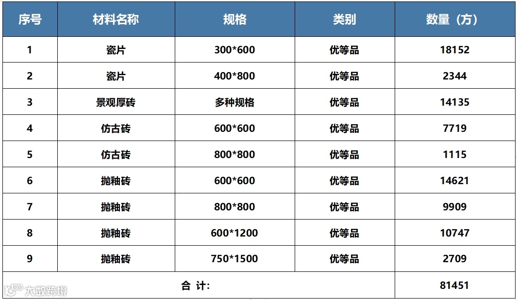 瓷砖产品出售明细