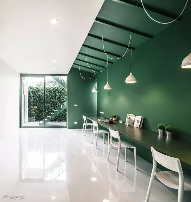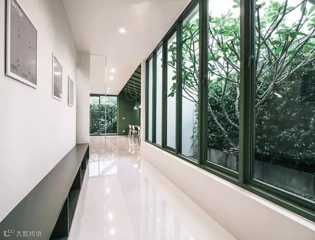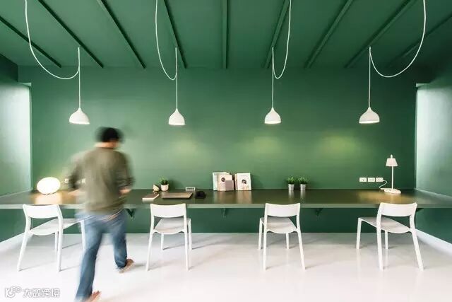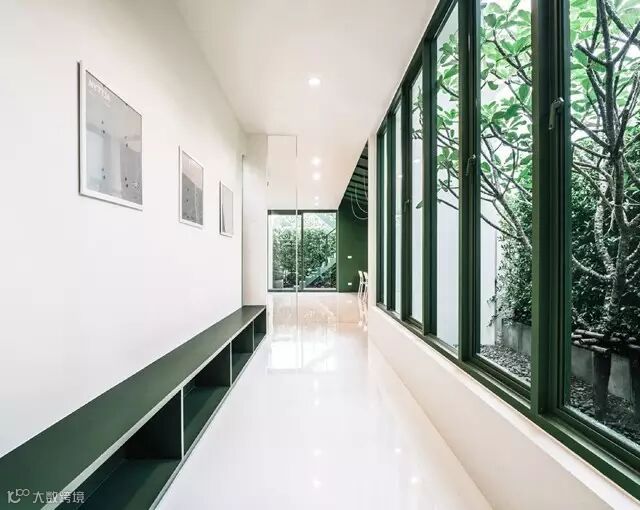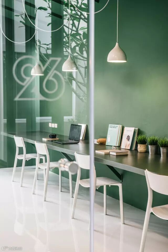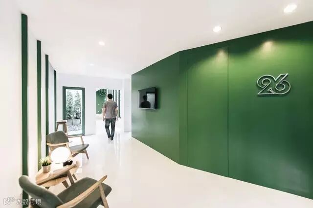 泰国电视制作公司办公室“green 26“由建筑设计工作室Anonym进行全面改造。项目位于曼谷的一个传统建筑中, Anonym工作室的建筑师希望链接起建筑过去和未来的使用。他们在后院未利用的空间中设计了一条封闭的长廊,并建造了一个新的内部庭院。绿色是客户最喜欢的颜色,因此在室内被大面积使用——甚至用在了公司的名称上,设计师也希望以此将自然元素带入办公空间。