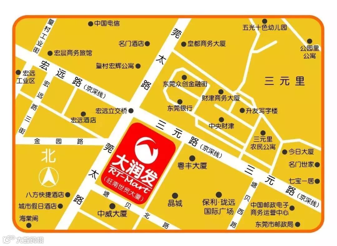 大润发地址:广东省东莞市南城街道莞太路115号 旺南世贸大厦负一楼
