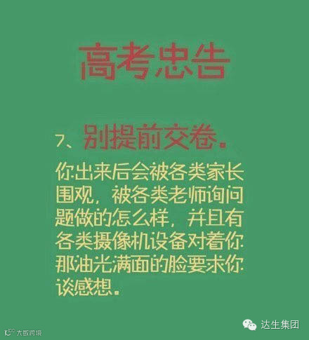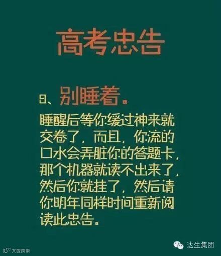 周末高考的孩子们,是不是越来越紧张呢,来,看看这些高考另类忠告,放松放松心情……
