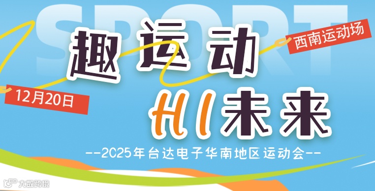 为丰富员工生活, 提升员工幸福感与凝聚力,公司将于12/20筹办台达电子(华南地区) 2025运动会。透过多元系列活动,传播公司诚信、创新、协同、共融、赋能的良好企业文化,展现员工积极向上勇于拼搏的生机与活力!