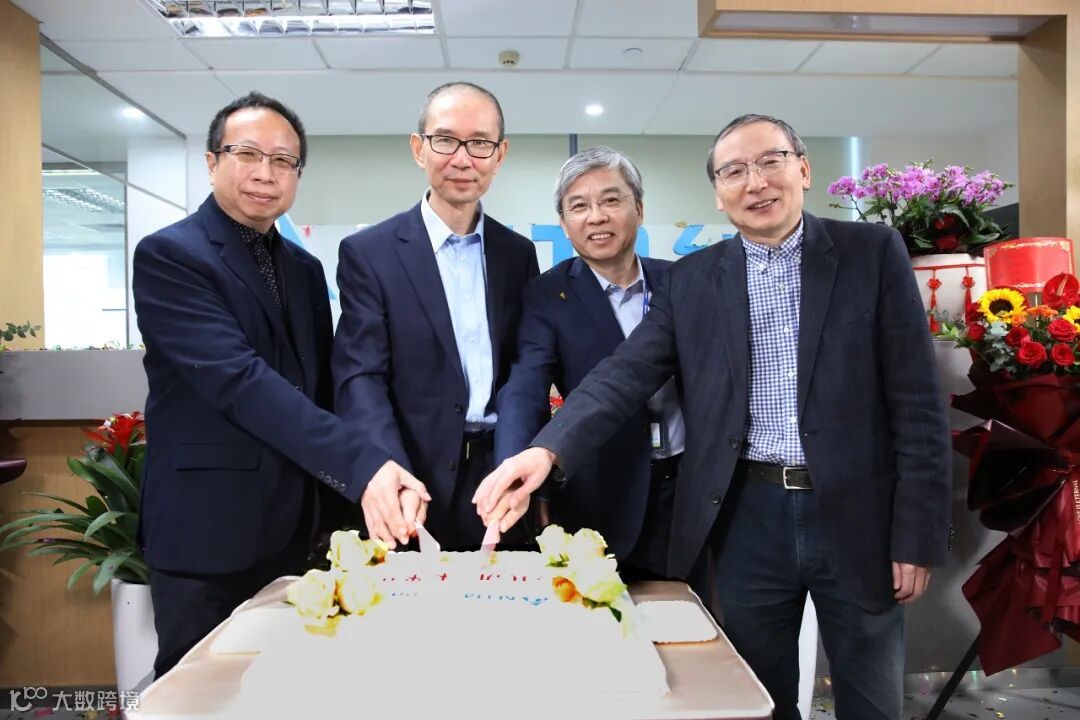 徐德鸿教授(右一)、吴晓农(左二)、章进法博士(右二)、廖哲彦(左一),共同庆祝杭州设计中心乔迁。