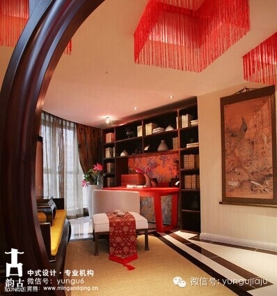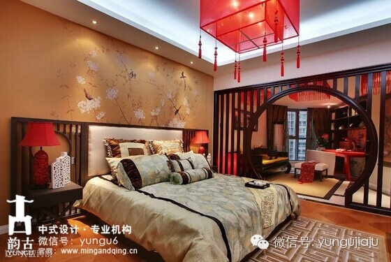 韵古中式家具公馆引申为一些比较高级的住宅。目标消费群体,以机关公务员及市区企业老总为主。 此类群体受过良好教育,对住宅的综合要求高,均表现为有内涵、气质、高雅,崇尚文化、 品位生活。因此,作为深具文化内涵的公馆是本案定位的最佳选择,它不仅迎合了本案目标消费群体,也为本案勾画了一幅名仕生活的蓝图。以东方元素为设计引线,融合洛阳当地的牡丹文化,营造出另一种禅意的生活方式。摒弃了原有公寓设计方案,将阳台与室内环境融合,扩大了有效使用面积。使用定制花卉主题壁纸,及定制马赛克花卉主题图案,和仿古木地板等。