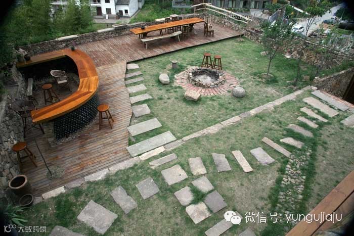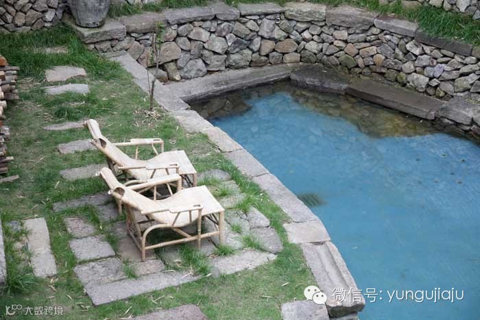 西坡的院子足足200平方米,比裸心乡或老树林别墅起码大了2-3倍。院子里除了有常见的藤椅外,夺人眼球的还有吧台、篝火晚会区和一个小型戏水池。约上几个好友来这儿开派对也不错,有篝火、有烧烤、有酒吧,又对着山林美景,实在是太过完美。