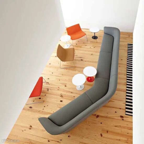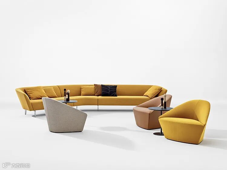 Loop是由多个柔软沙发构成的模块化系统,这些组件的结合,或是短簇丛集,或是长而流畅的线条,具有独特而富有表现力的特征。其形式和轮廓是图形化的,而其整体效果却是建筑化的。在大空间中,这种线性形式划分出等候区、休息区和会议区。