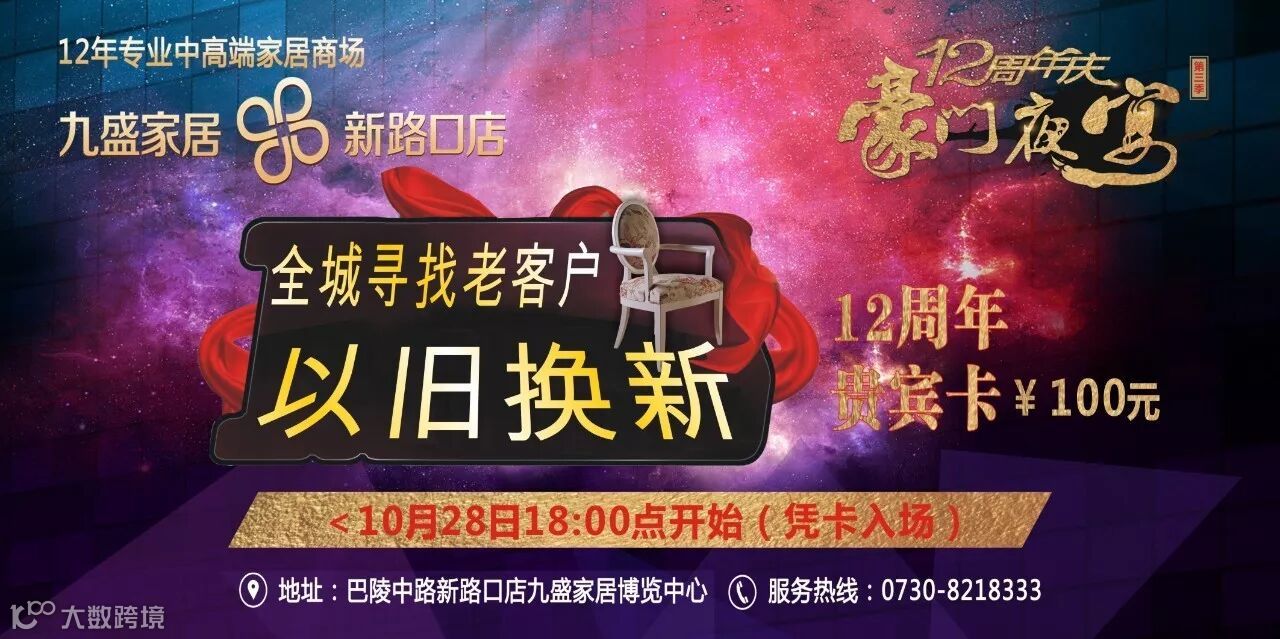 一段真情绵延十二年,一份炽爱相伴永远。九盛家居新路口店十二周年庆典活动受到社会各界的广泛关注,继第一季与第二季活动之后,又即将于10月28日掀开第三季豪门夜宴的大幕。