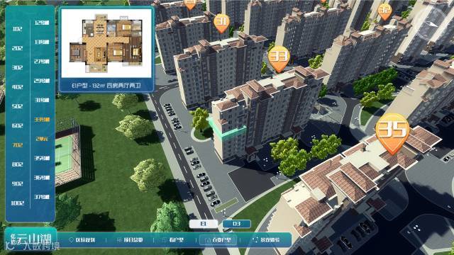 梓琳在触摸大屏上轻轻一点,项目的区位优势、交通设施、主要干道、周边商圈、配套设施等就一一呈现在业主眼前,逼真的3D效果、流畅的切换、主次分明的展示,让顾客们完全融入其中。