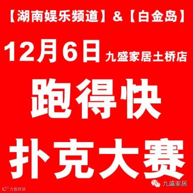 2014跑得快扑克大奖赛(岳阳赛区)12月6相约九盛家居【土桥店】九盛9周年庆现场狂欢。2014年白金岛万人跑得快扑克大赛即日开始报名了。12月6日在九盛家居土桥店一楼大厅参与比赛就有机会冲刺汽车大奖报名热线:2959088