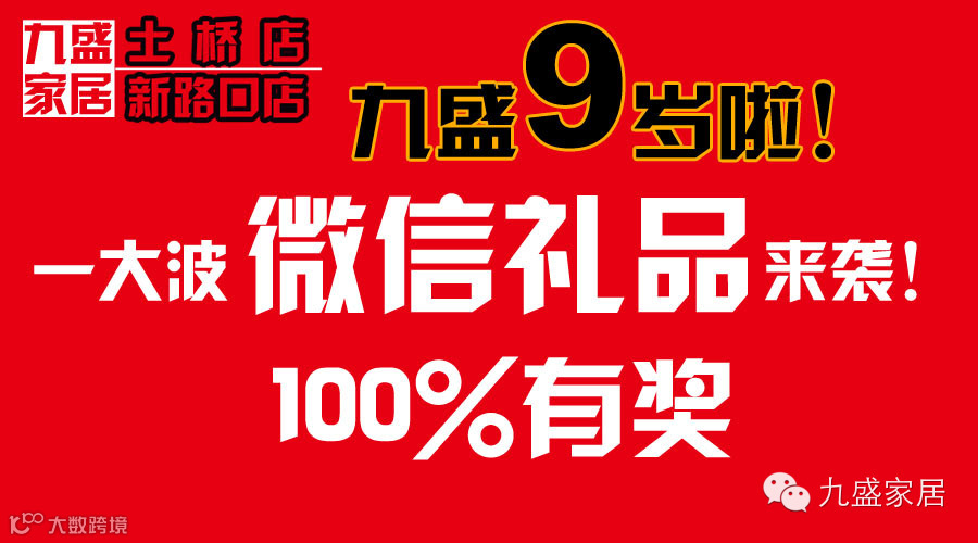 关注九盛家居公众平台,在平台回复“九盛家居”,即可参与九周年砸金蛋微信送豪礼活动。