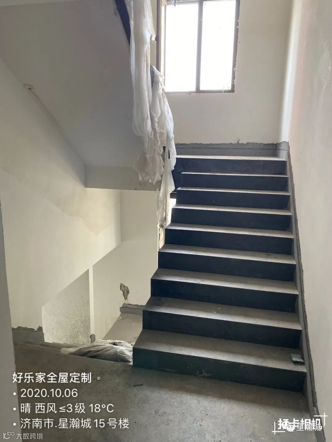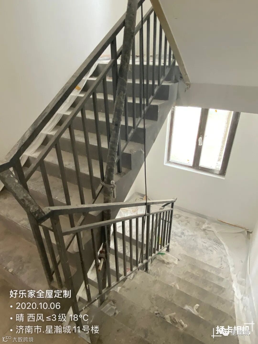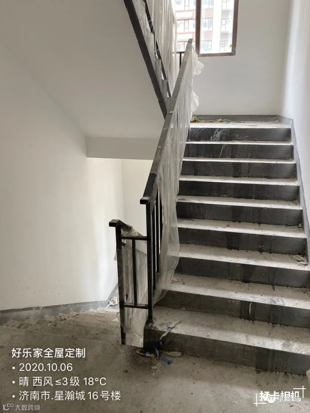 部分楼层楼梯扶手已安装。