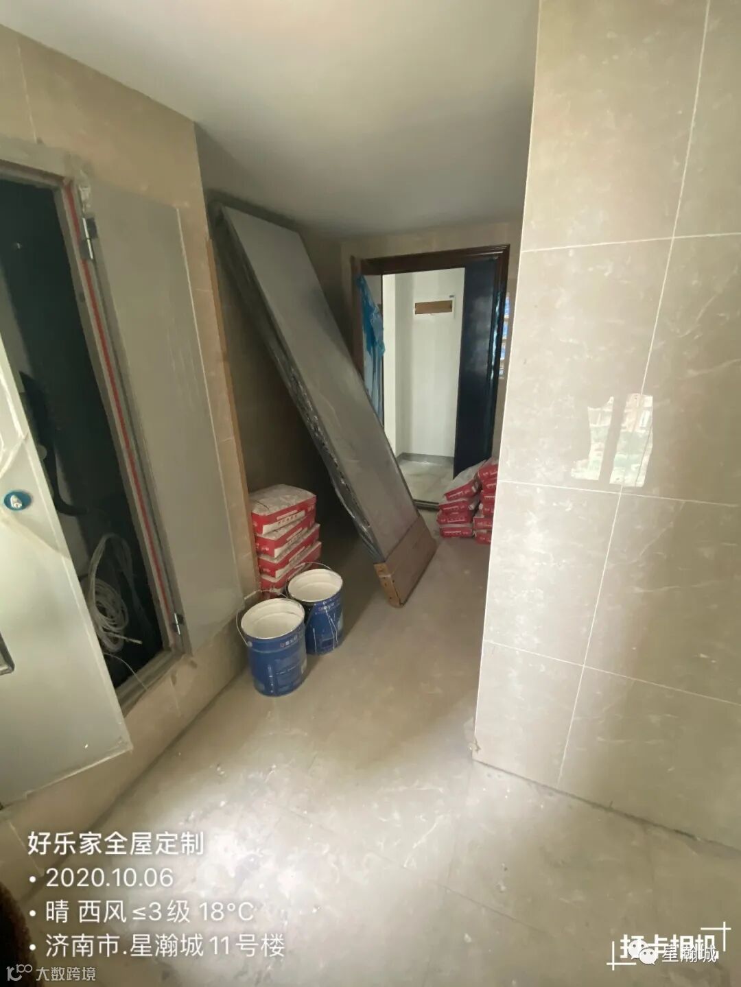 13号楼 西侧单元门厅施工中。