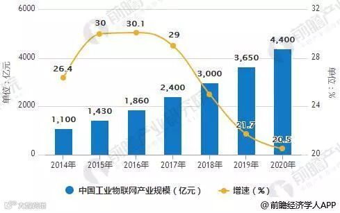2014-2020年中国工业物联网产业规模统计及增长情况预测