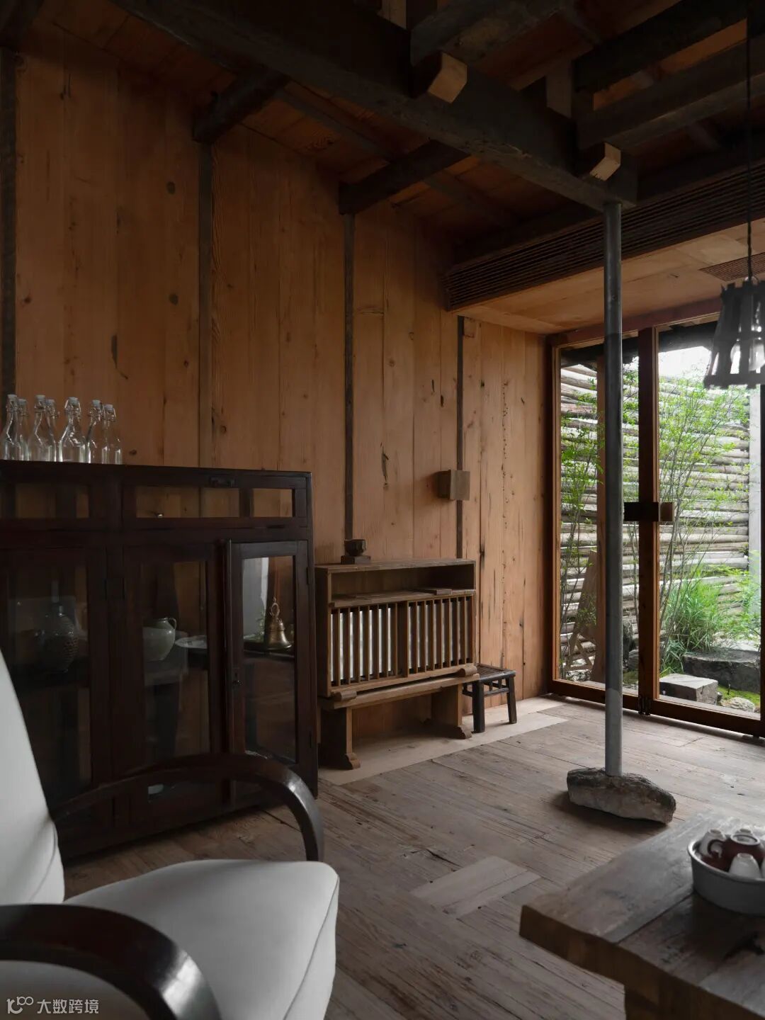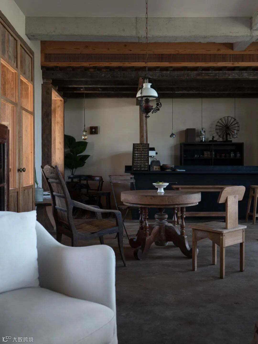 Zea ROOM包含了咖啡馆、小酒馆、茶寮、餐厅、工作间和一条小溪,它与工厂由一堵小木条垒起的围墙隔绝开。Zea ROOM的结构、门窗使用了大量柚木,这种热带硬木使它颇具东南亚气息。和退化建筑的茶室合作的“弓”系列、结合了大漆的野木在望系列和更轻松轻盈的“洋松”系列家具分布其中。也有很多来自东南亚的老柚木家具,它们是19-20世纪殖民风格的东南亚分支(影响了后来的南洋家具)。对称、实用和手工的东方装饰融合,加上热带闲散生活方式的投射,使得这些家具大多在形制上朴拙松弛。集野木工的家具也深受这些老家具影响,在此基础上守正创新。新老在 Zea ROOM 的空间中也形成融合与参照。