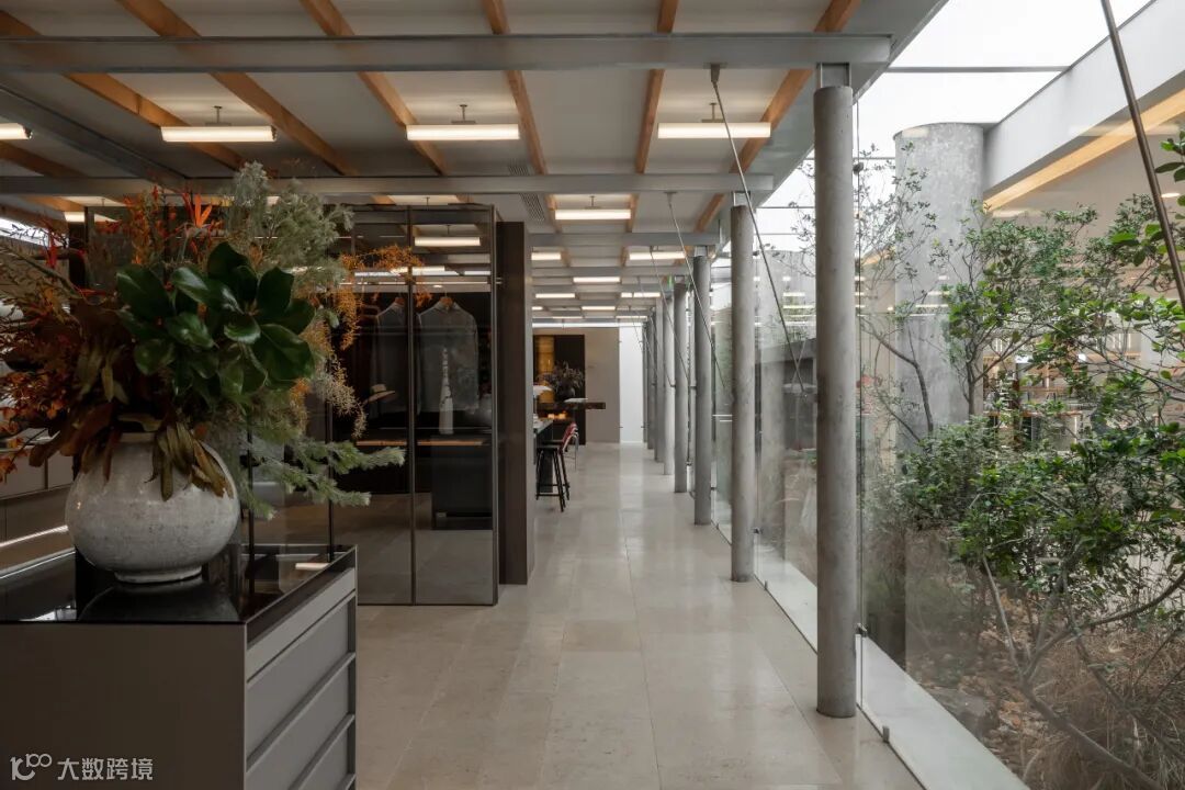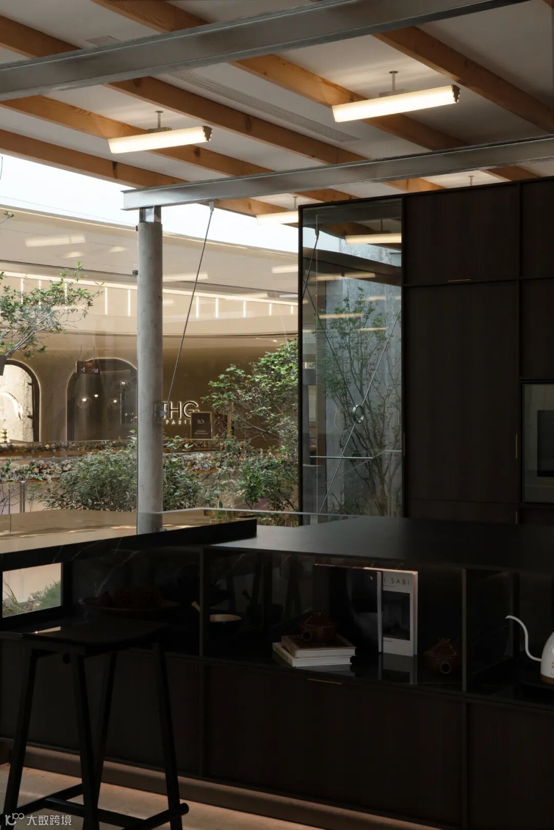 如果说混凝土、不锈钢构筑了空间的秩序与平衡,那玻璃、冷杉、草木与家居产品则为空间增添了光彩与温度,让Goldreif散发出那模糊的金色光晕。