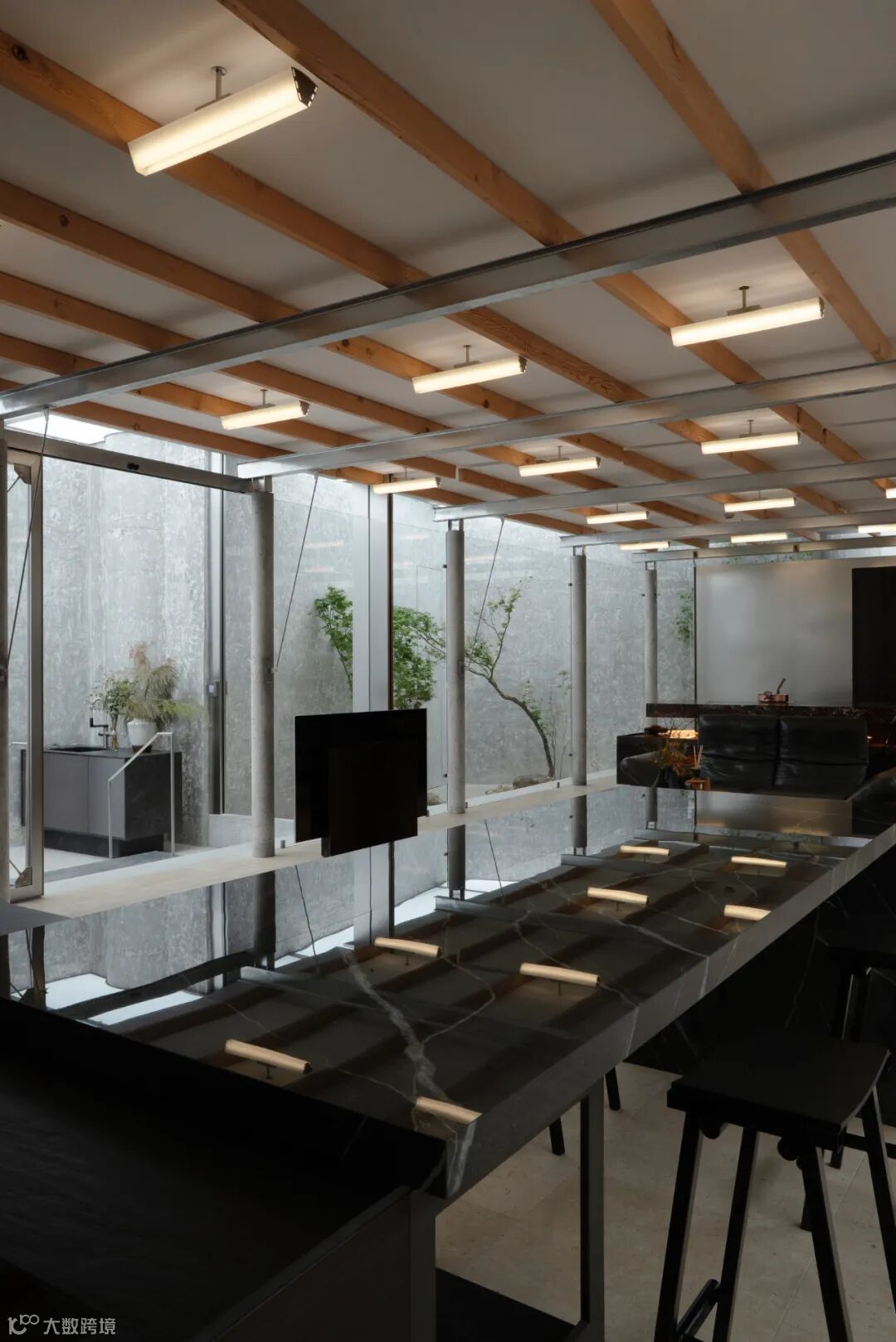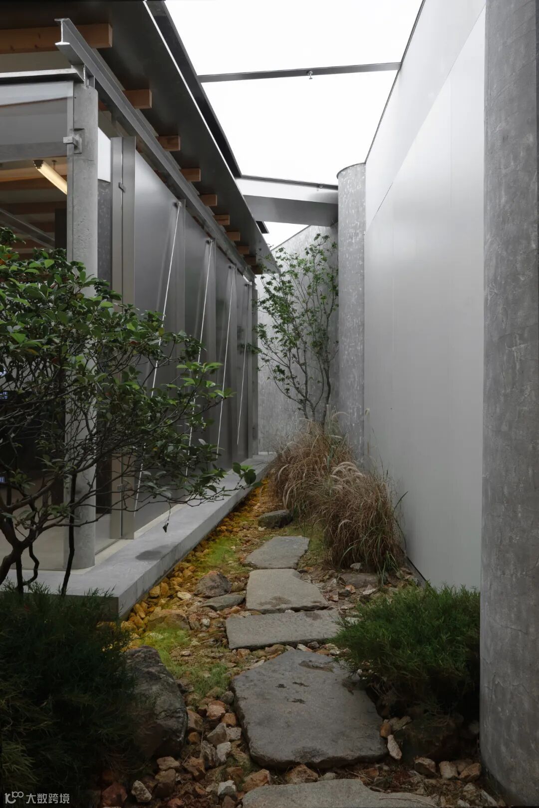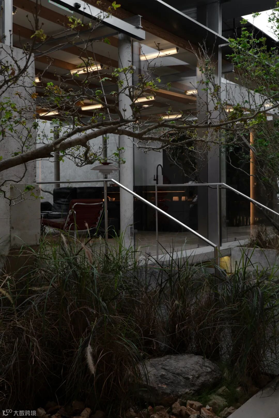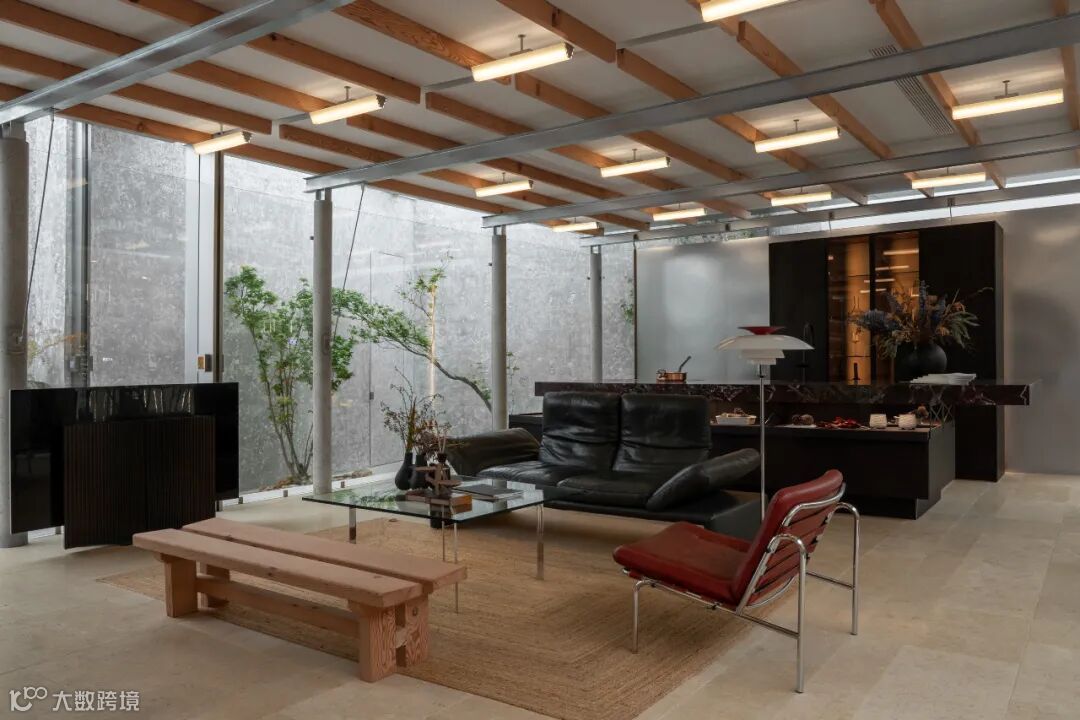 设计方以现代主义建筑设计师密斯的“范斯沃斯住宅”为灵感,通过多种材料实现“模糊空间与生活场景的界限”这一核心理念。