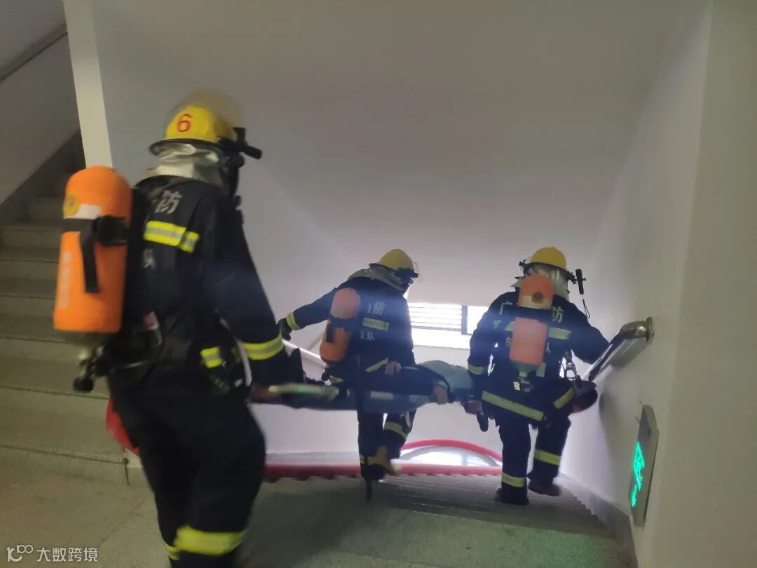 在有序疏散的同时,消防员们也在第一时间赶到了“火灾”现场,开始实施“伤员救助”。