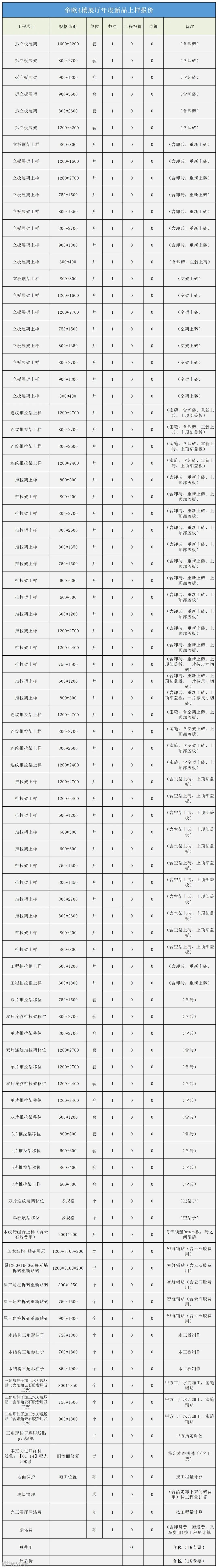 帝欧4楼展厅新品年度上样报价表