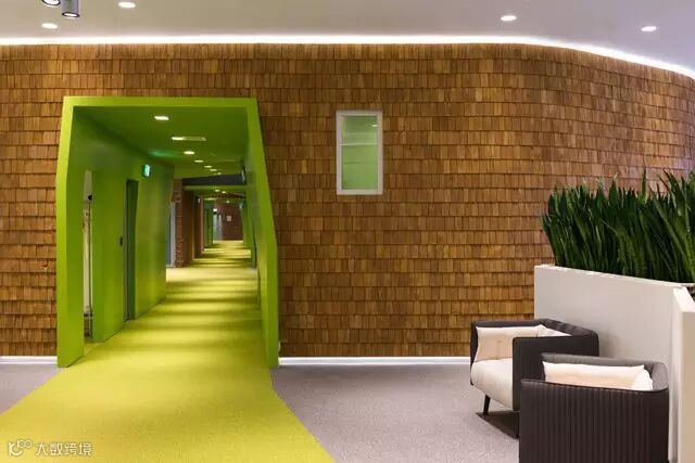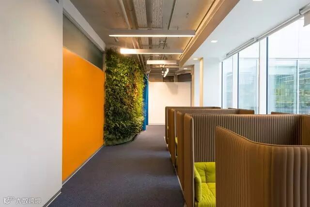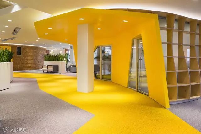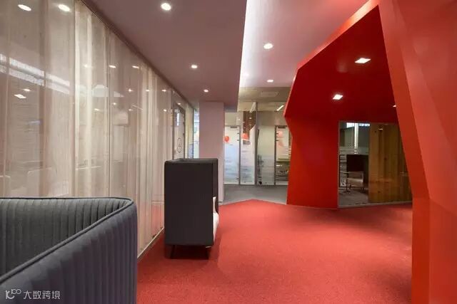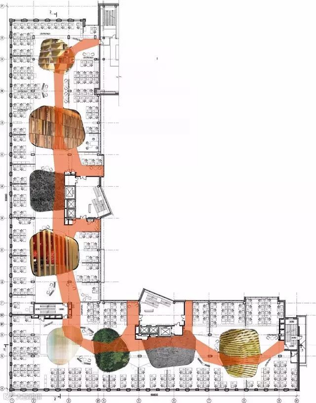 办公区的规划方案是基于了,总部部分早期建筑的设计方案,但进行了升级改良如以往的设计,总部中心配有大批技术设备,及会议设施周围一圈为操作办公区,但是部门之间的沟通途径变得更加清晰(可洞察整个中心区域,且每层楼的颜色都是不同的)如今中心区的设计采用独特的形式(8种类型)形成了一个良好的部门沟通体系,再也没有人因中心的设计,而迷失其中,不知所措,人们有了足够的开放式空间