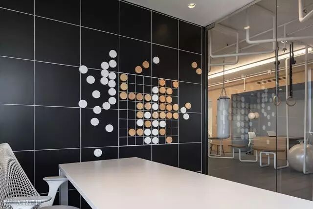 奥赛罗游戏是办公室经理放松的方式。设计师把奥赛罗的磁铁放大,放在经理房间的铁壁上。