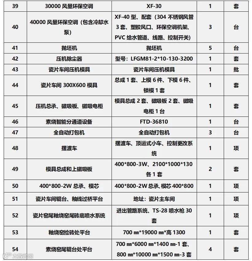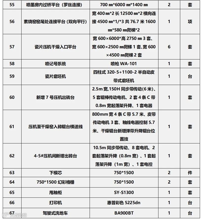 景德镇基地二手设备转让清单
