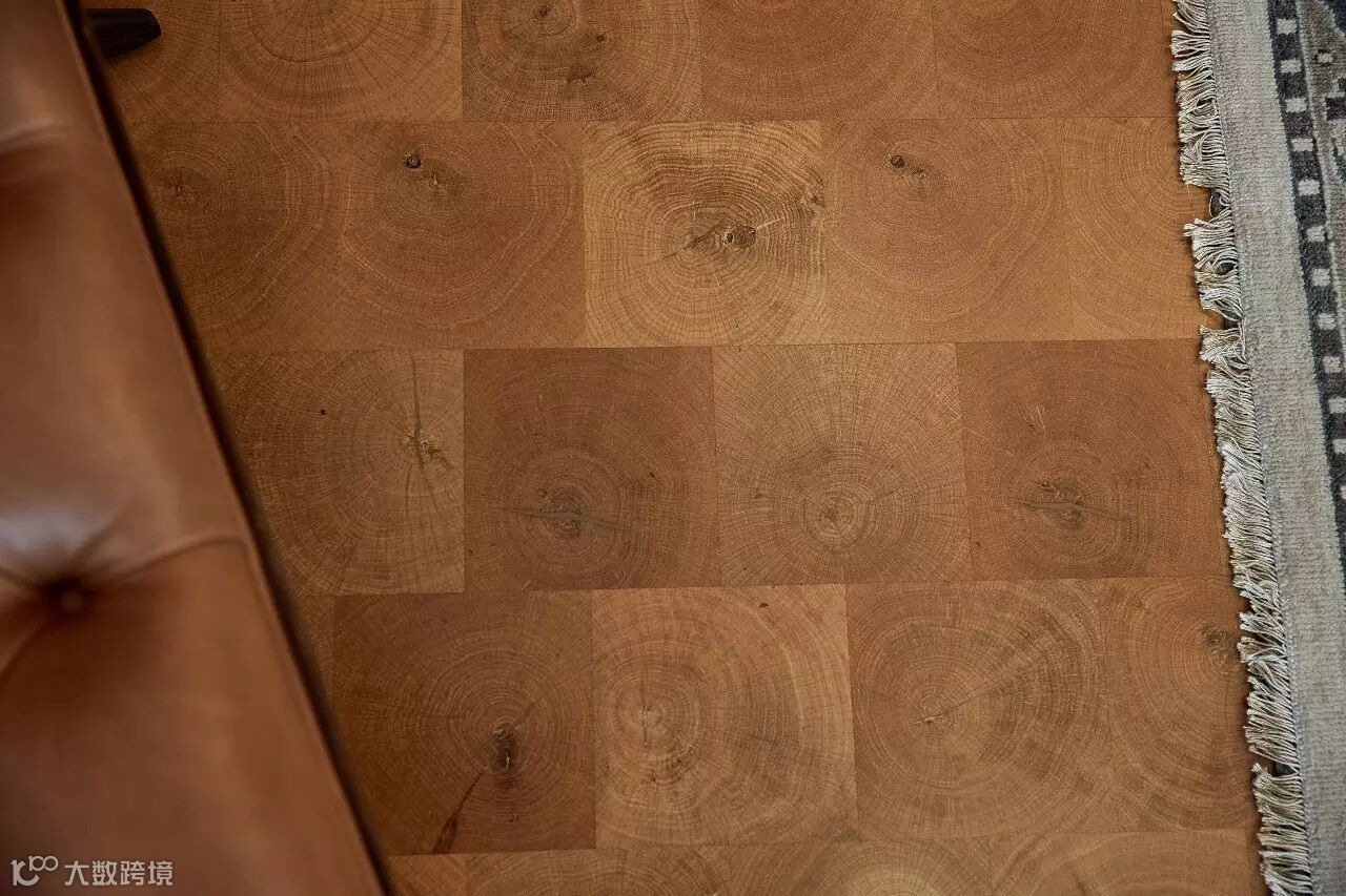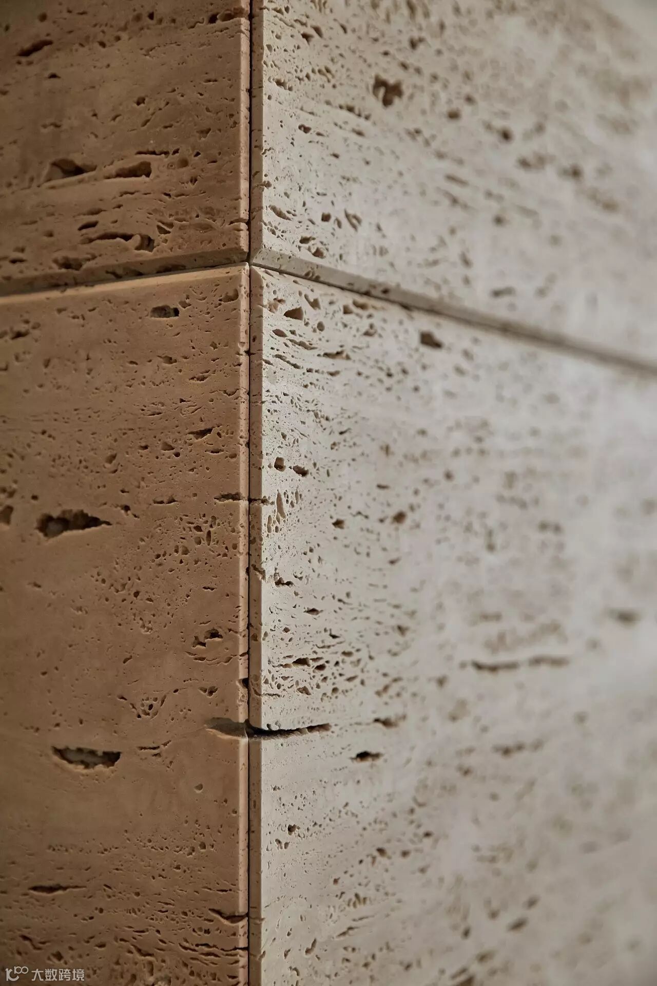 好的作品不会让你乍看到炫耀技巧,平平静静,但你越欣赏,越细看,越发觉设计师的用心。客厅地板是一棵棵树芯取下来的真实木块,背景墙的天然洞石保留了原始沟壑痕迹……