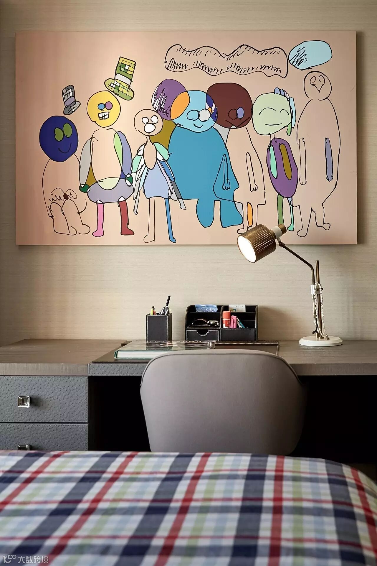 真正的艺术永远是空间最奢侈的语言。客厅正中央是中国艺术家丁雄泉先生的《红粉三美图》,色彩明艳的画面,宛如置身在春天一般,充满浪漫、热情洋溢的气息,饱满的生命力呼之欲出,让整个空间充满活力。