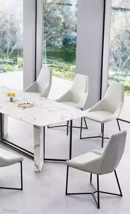 很多人认为,极简风缺乏生活的味道。事实上,真正的极简风摒弃那些不必要的装饰。同样是开放式的空间设计,白色的大理石餐桌,干净整洁。餐桌上搭配一点“小心机”的绿植和金属装饰,轻松展现精致质感。