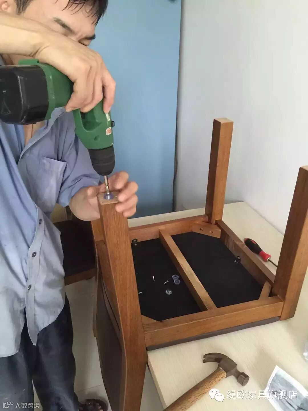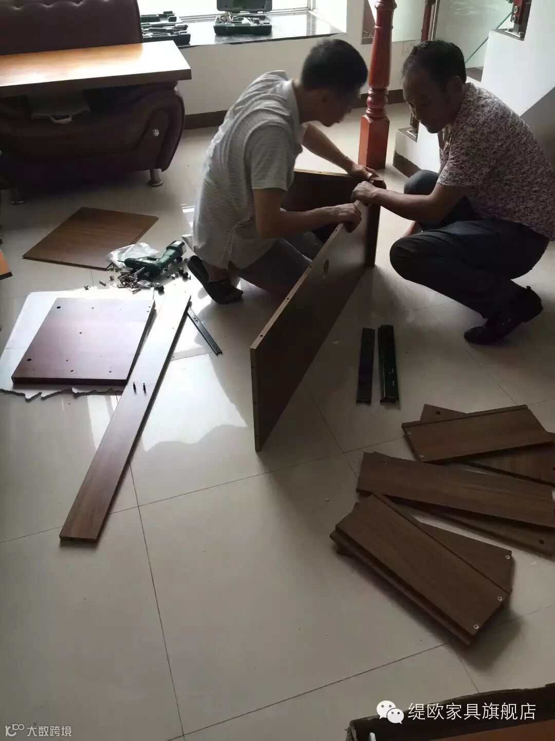 师傅送货到客户家中,用专业的技术快速地开始安装