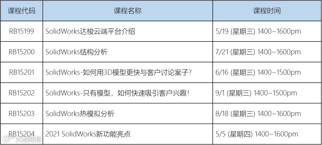 从5月份开始举办以下一系列SolidWorks 软件相关课程(全部为线上课程), 有使用该软件或对此有兴趣的同仁可报名参加。