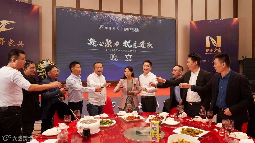 年会晚宴上,北美之家的家人们欢聚一堂,把酒言欢,2019铭晋家具年度总结大会在一片欢腾中圆满落下帷幕!
