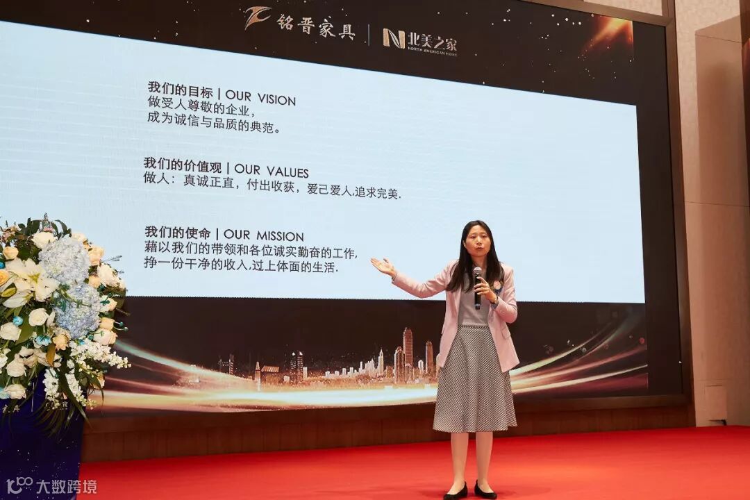 北美之家总经理杨琼蓉女士,在致辞中提到,2019年是铭晋公司的第20周年,这一年,我们推出的全新子品牌Metropolis大都会深受市场的喜爱与青睐,同时在市场全面下滑的时候,我们子品牌查尔斯顿的业绩依然稳中有进,查尔斯顿是当之无愧的“扛鼎之作”。同时,我们坦然接受2019年的不足,把今天的掌声转换成明天实际付出的力量!