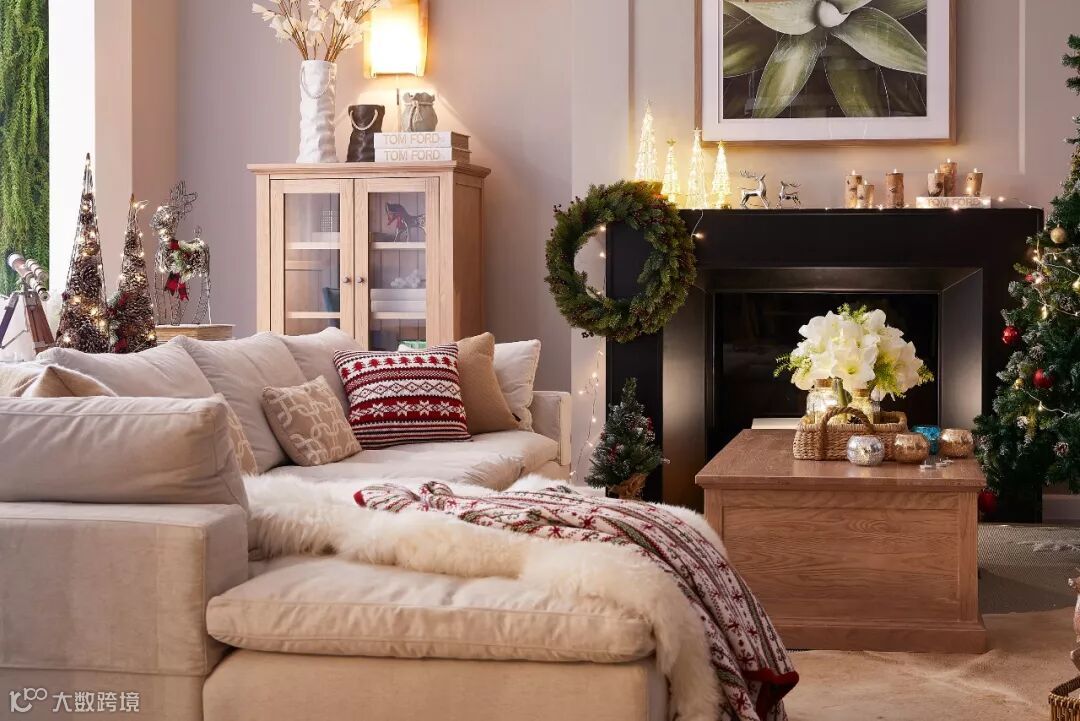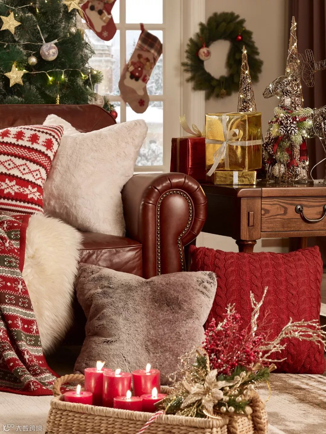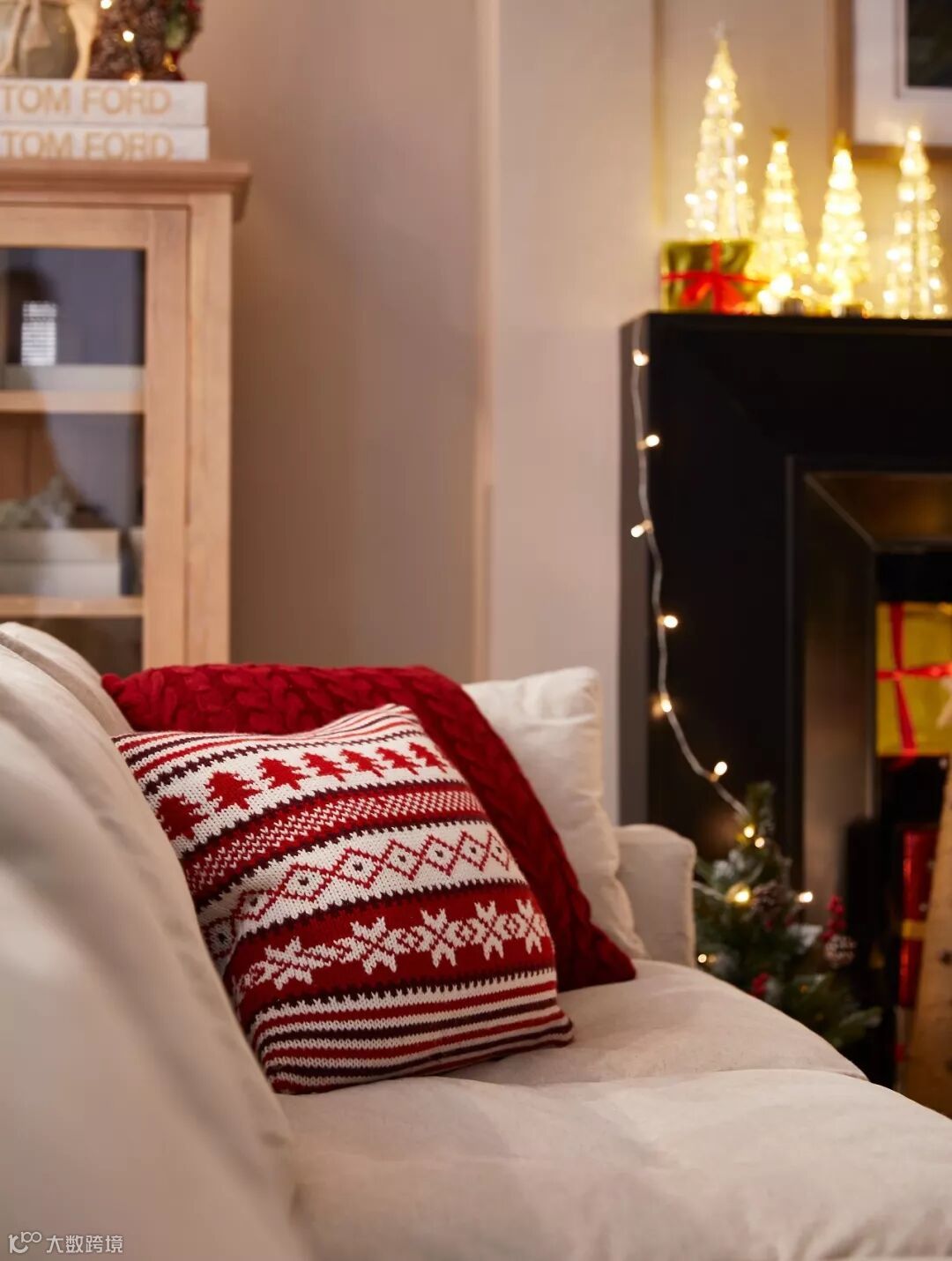 在静谧沉默的冬日里,一声Merry Christmas,打破了千篇一律的日常,撩动心弦,在舒适柔软的布艺沙发上放上极富圣诞元素的红色抱枕,并在旁边摆上一棵小小的圣诞树,挂上绿色松枝花环,缓缓描绘出一幅欢乐的圣诞画卷。