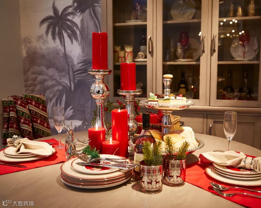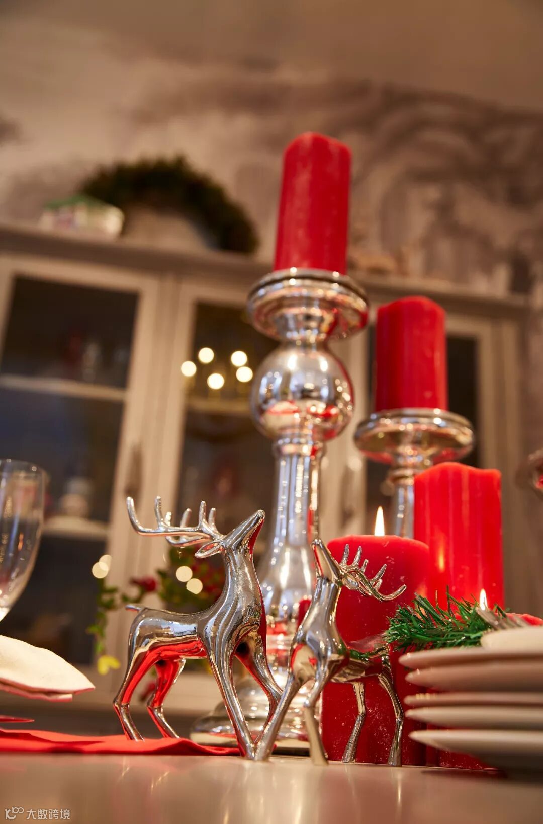 在餐桌上铺上红色桌布,点亮几枝蜡烛,再配上几枝松枝点缀,连寒冷的空气也变得温暖宜人,洋溢着幸福的味道。