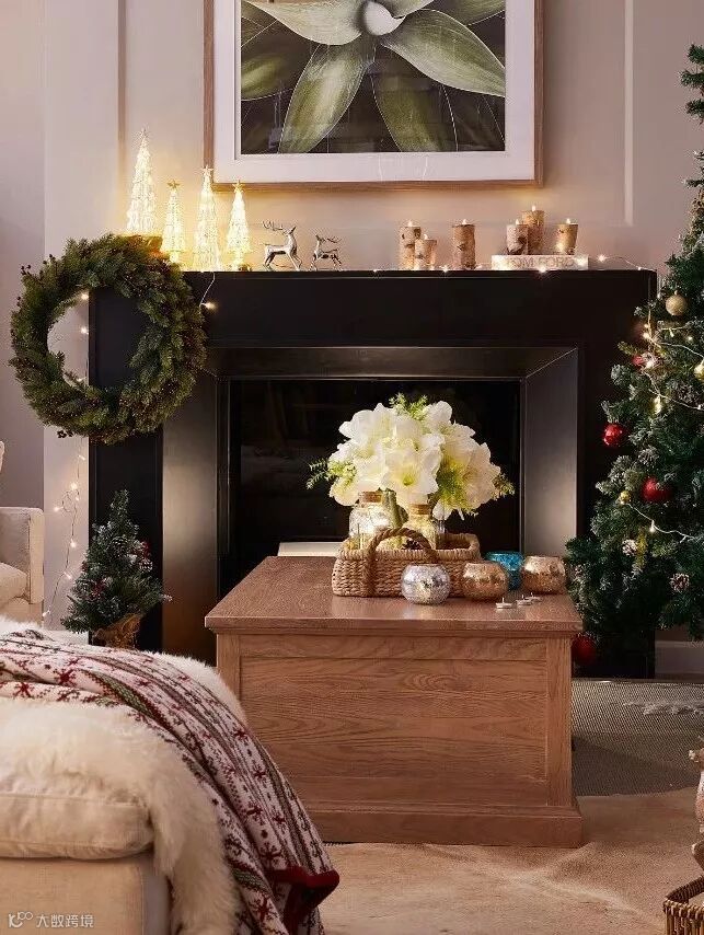 暖色系壁画与温暖的烛光交相辉映,为家打造出温暖气氛,多色彩球、缎带、缀饰等,装饰绿色植物,谱写圣诞的美妙旋律。