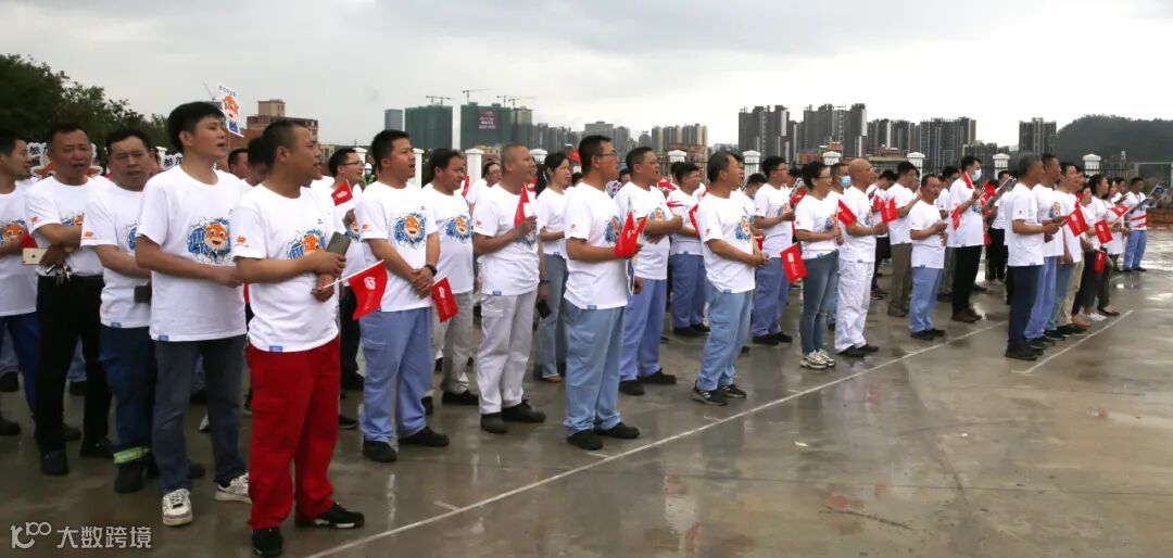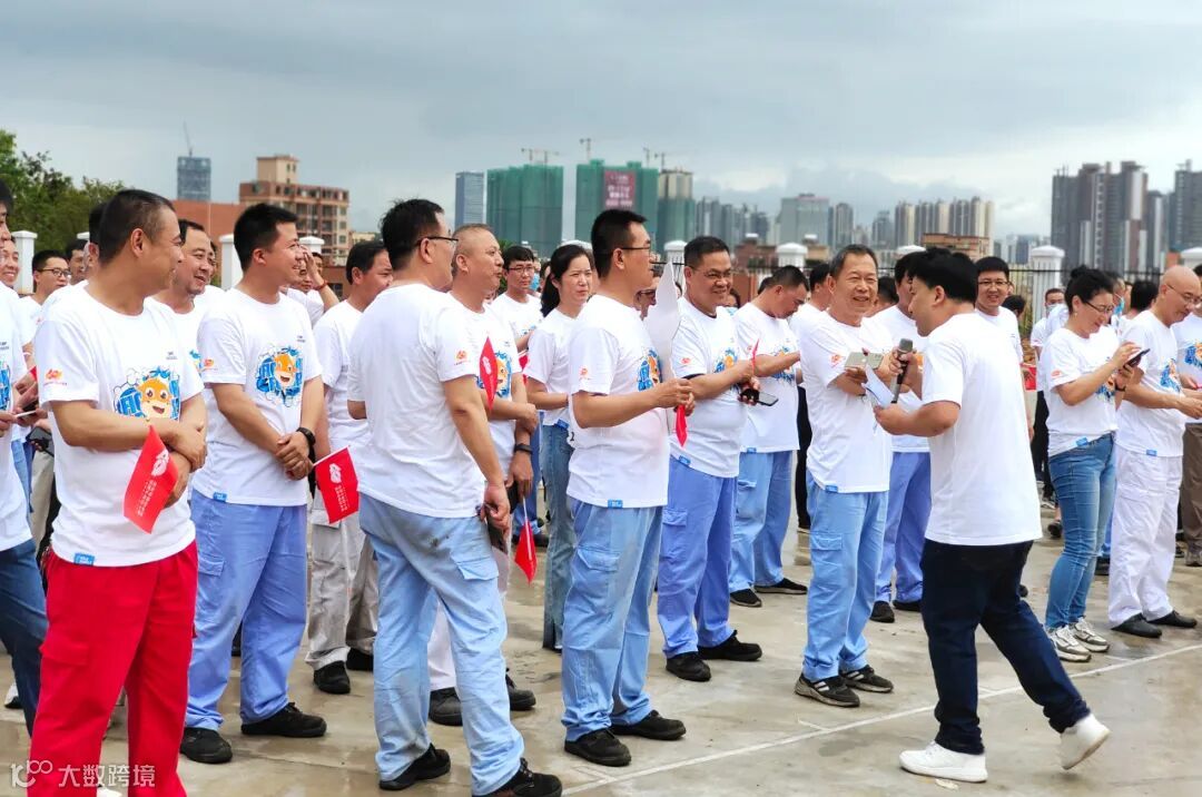 5月26日下午两点半,东莞南方中集“文化万里行”的启动仪式正式开始。集装箱板块代表夏蔚经理、孙霜婷经理,东莞南方中集总经理刘晓旭携领导班子,各部门经理与员工代表180人共聚一堂,共同开启庆祝活动。在启动仪式开始前,天空还在下着大雨,预演也未能如期进行,但我们在场所有工作人员都没有一人放弃和离开。就在开场前5分钟,大家都以为此次活动有可能要延后的时候,天公作美,天突然放晴了,参会全体人员伴随的欢快音乐,迈着愉快的步伐走向集合点。这也像极了我们文化打卡地涂鸦集装箱所画的一样——无惧风雨,破浪前行!