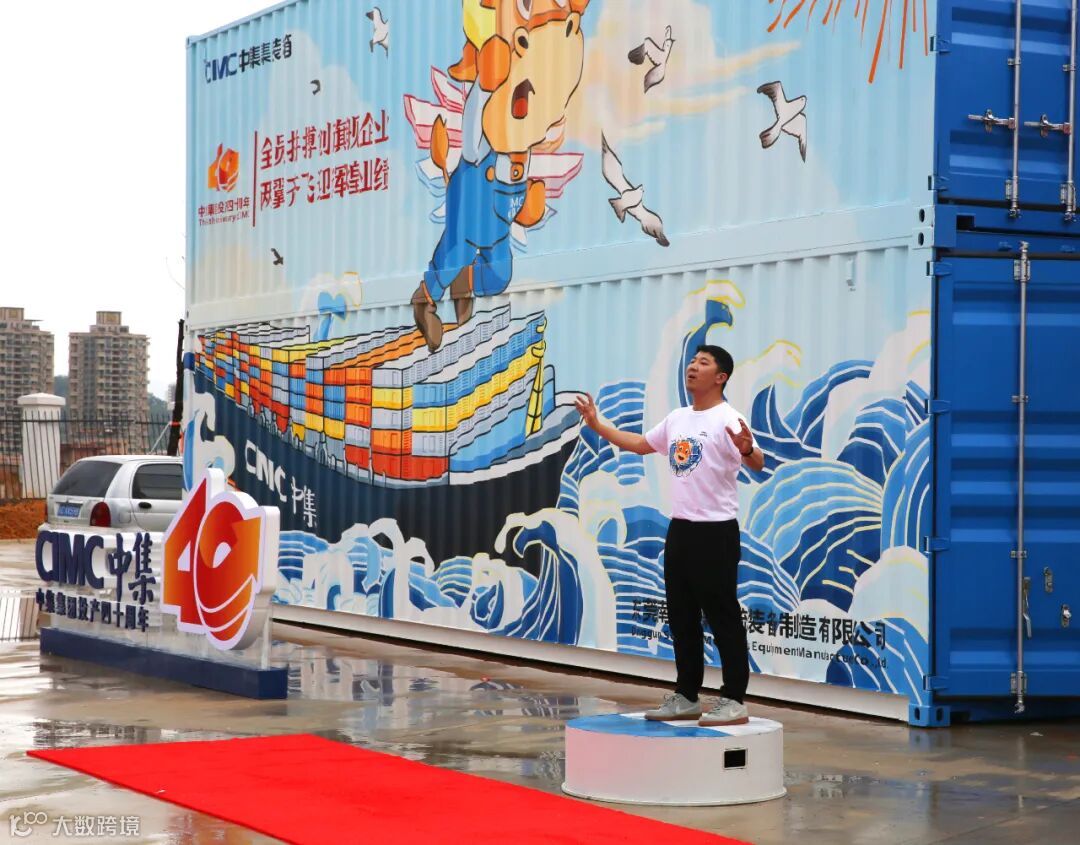 接下来管理企划部吴钢经理为大家介绍此次活动的方案,并解说了箱体绘画构图的含义。他说:“我们是板块首个建成文化打卡地的,箱体上的喷绘构图是大海与天空,一艘满载集装箱的大型货轮正乘风破浪向前进,拓荒牛从船头跃起,一飞冲天奔向未来。小牛借助“科技翅膀”一飞冲天奔向更广阔的未来,同时也表达了标箱与特箱的“两翼”齐飞,寓意南方中集40载乘风破浪而来,必将传承拓荒牛努力拼搏、自强不息的精神,再创辉煌业绩。”