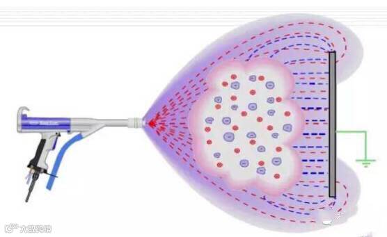 是用喷粉设备(静电喷塑机)把粉末涂料喷涂到工件的表面,在静电作用下,粉末会均匀的吸附于工件表面,形成粉状的涂层;粉状涂层经过高温烘烤流平固化,变成效果各异(粉末涂料的不同种类效果)的最终涂层。