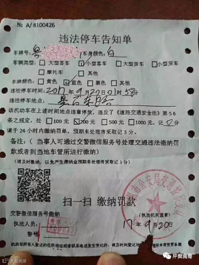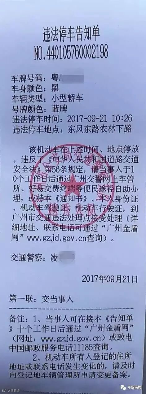广州交警的违停通知书有两种