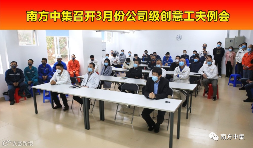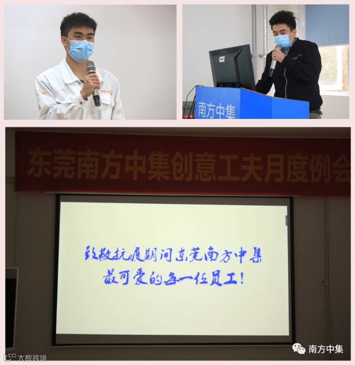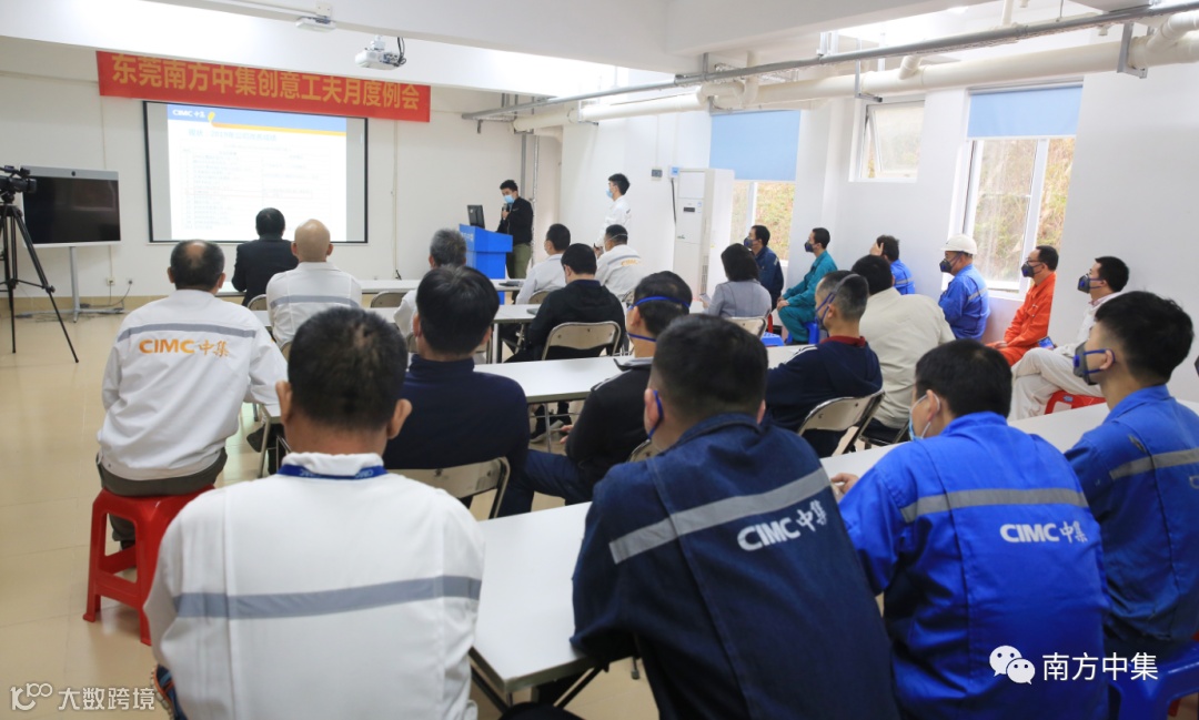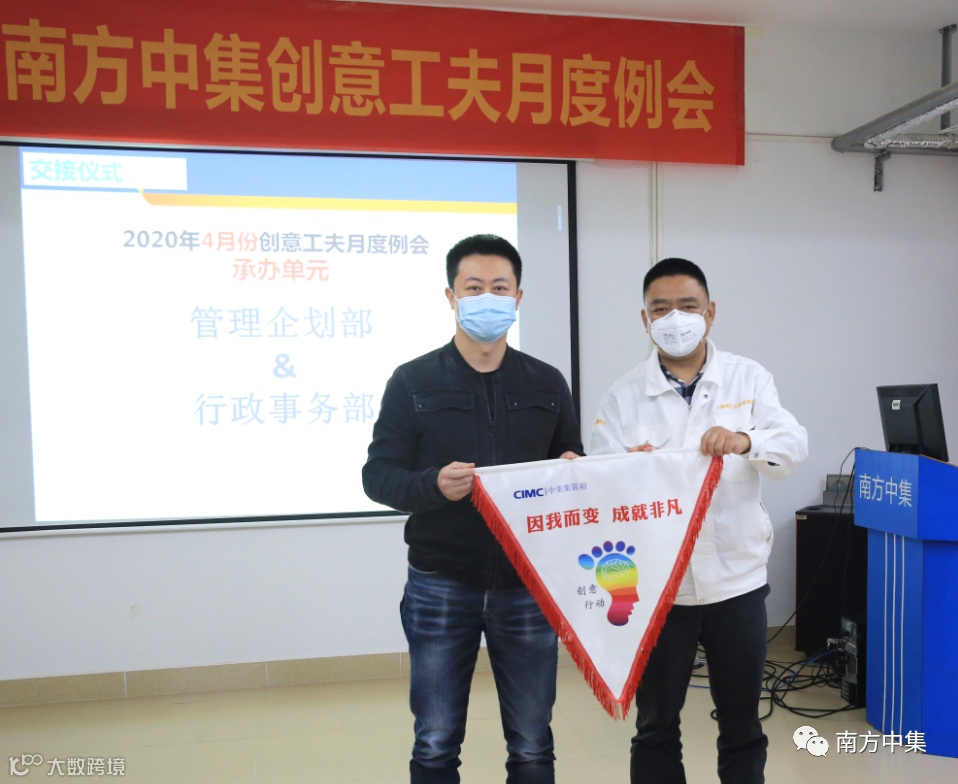 一部激昂的创意工夫暖场片“与时间赛跑 与疫情抗争”拉开了例会的序幕,同时致敬抗疫期间东莞南方中集最可爱的每一位员工。随后,管理企划部王宇桂汇报了《公司创意工夫推进思路》,对2019年创意工夫开展情况进行了总结,并提出了2020年公司创意工夫总目标——人均提案数大于5件,参与率100%,入围集团第二届创意工夫发表会提案大于2件。