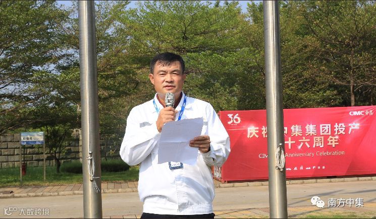 金秋九月,迎来了中集集团暨南方中集投产36周年的喜庆日子。9月21日上午,南方中集在厂内西门大草坪举行了庆祝中集投产36周年升旗仪式,总经理丁枫、常务副总经理李成明、副总经理张德海和刘晓旭及各部门文干、工人代表共计200余人参加了升旗仪式。管理中心主任胡志伟主持仪式。