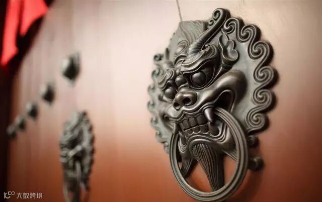 ▲ 拉手有时还配上古朴的门闩,“鱼”的寓意是年年有余;“万”是吉祥标志,“万”字的笔划向四个方向伸展,代表着太阳四射的光芒,给人们带来温暖。