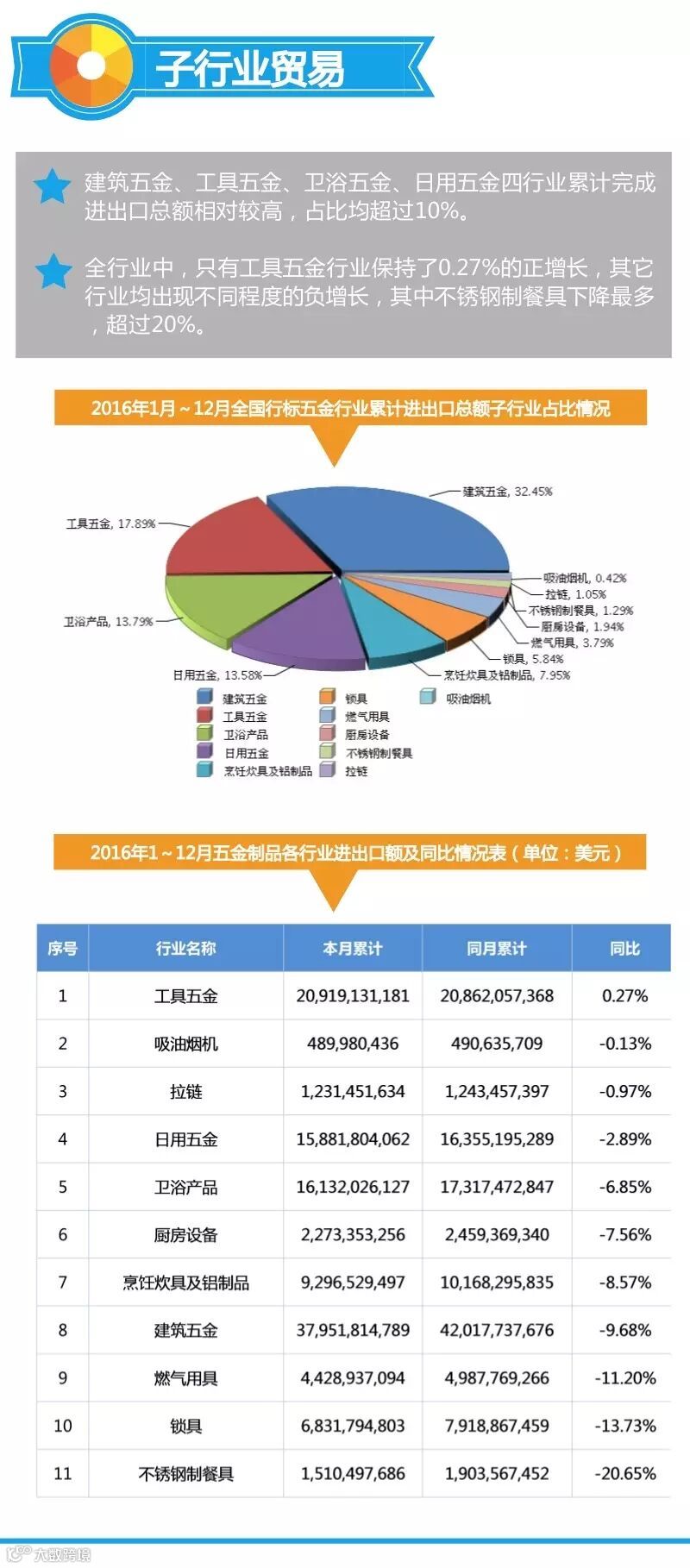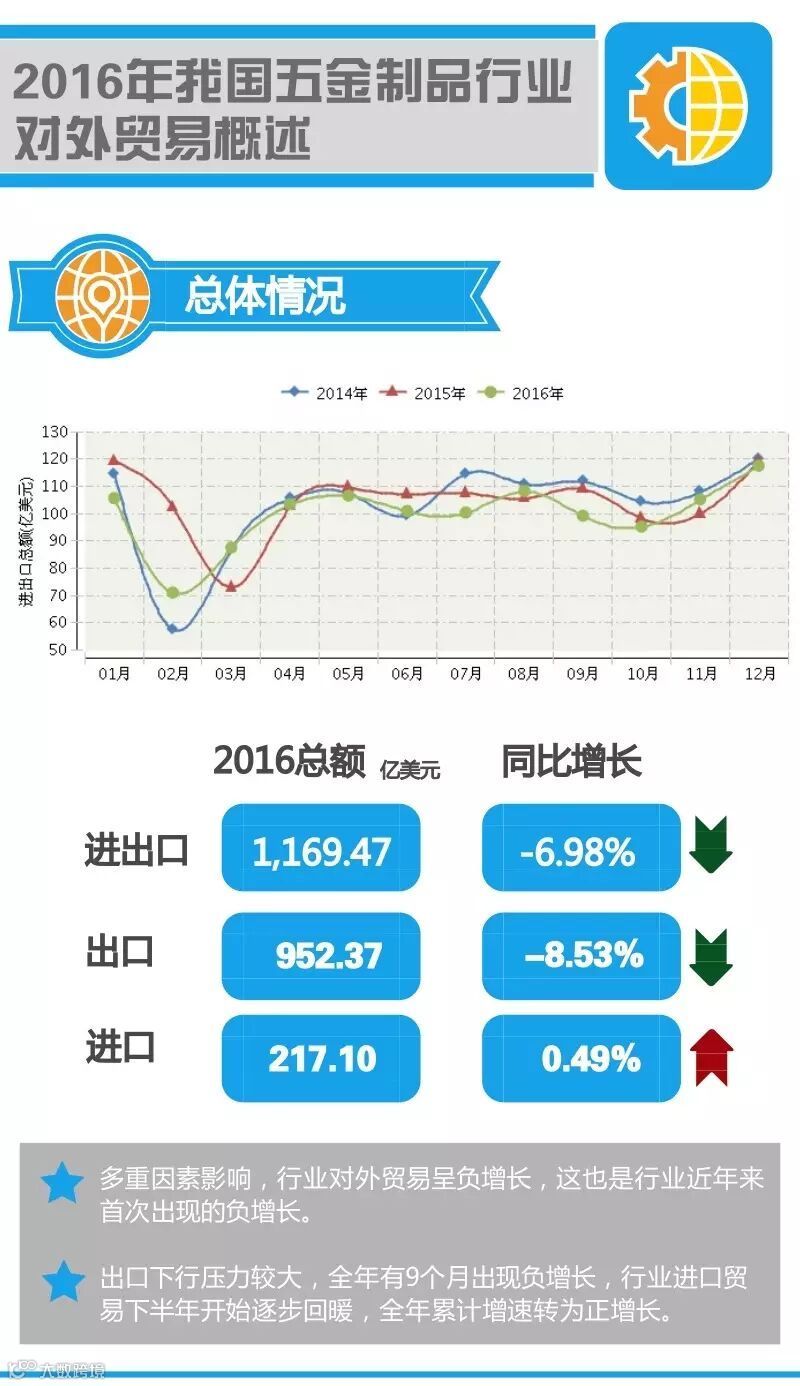 2016年我国五金制品行业对外贸易表现如何呢?下面的图会告诉你!