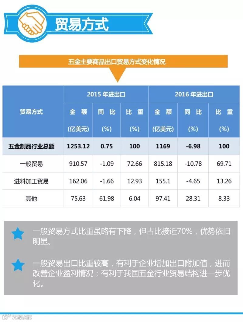 五金制品行业对外贸易近年来首次出现负增长;