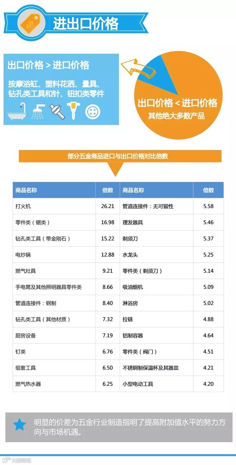 五金商品进口价格高于出口价格,行业亟待提高产品附加值。