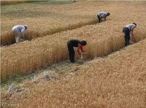 人们都是这样用镰刀割麦子的。