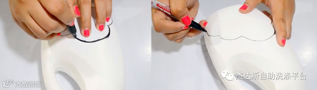 1.先在白纸上画一个模版,把模版放在瓶子上,用记号笔做好切割的标记。