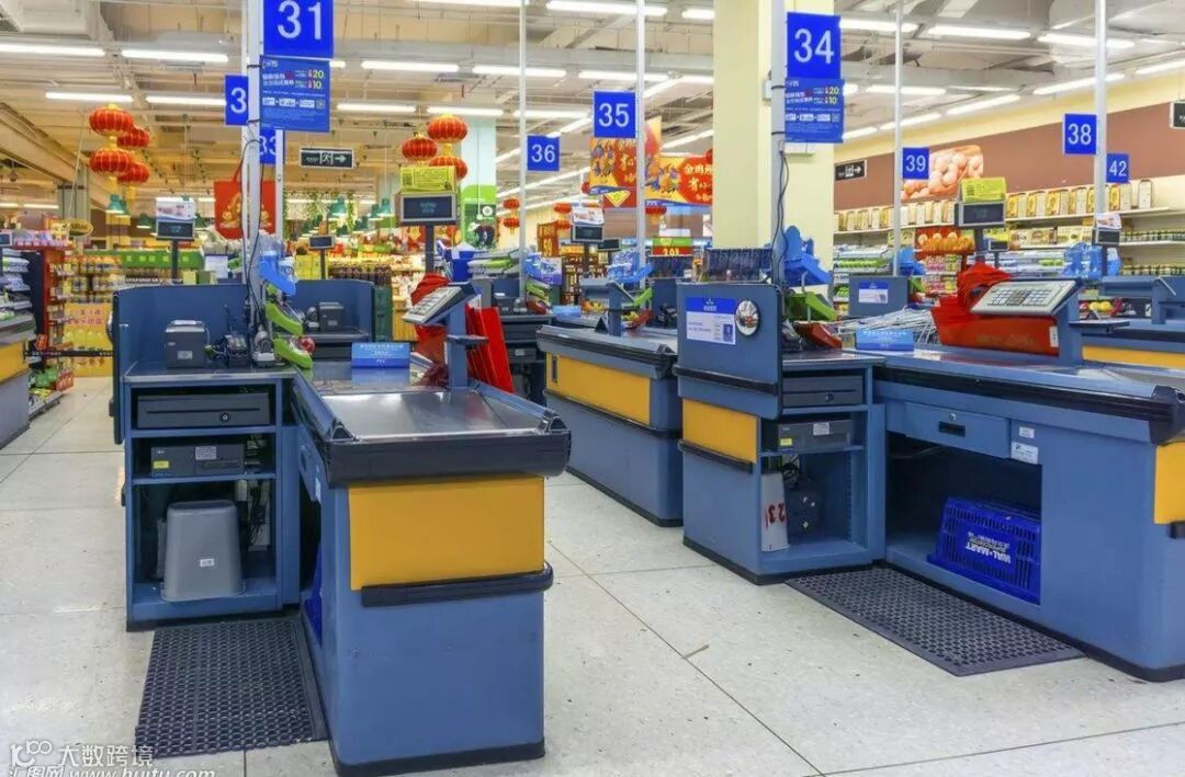 收银等候区:指顾客结账的排队区域,一般宽度要求至少容纳3个人排队(手提篮排队宽度约0.8米,推车排队约1.2米),但具体也受到整个建筑和布局的制约。